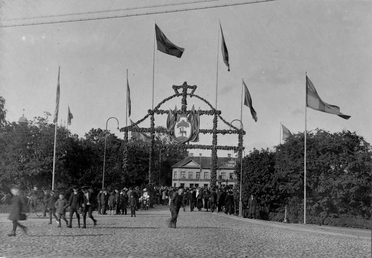 Torgbron mellan det Stora och Lilla torget dekorerad i samband med 300-års jubileumet 1919.