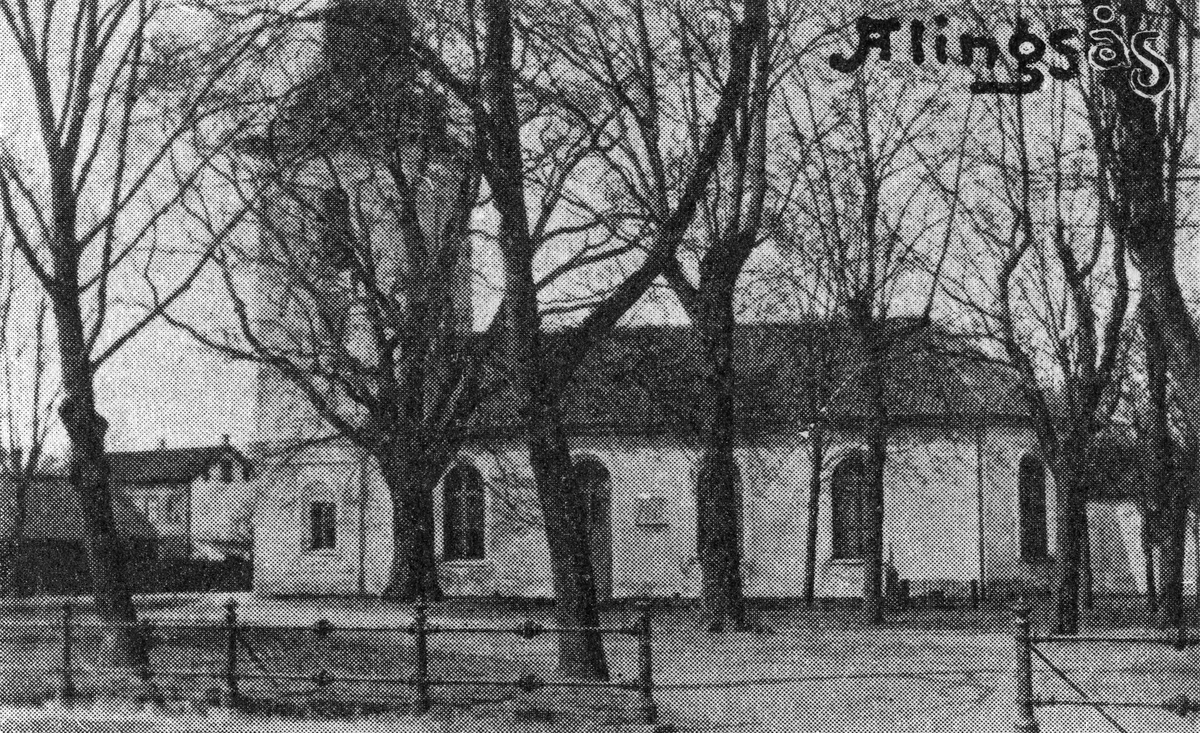 Alingsås stadskyrka. Alingsås skrivet på bildens högra översta sida.