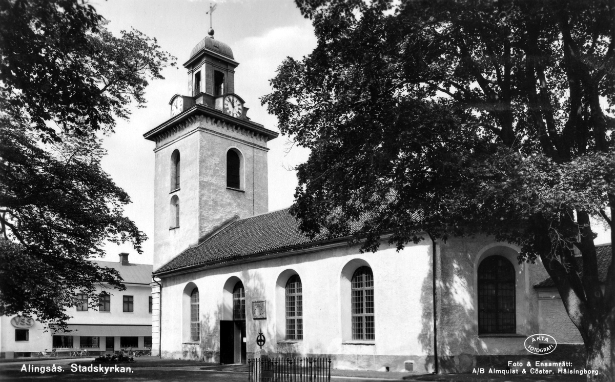 Alingsås stadskyrka med klocktornet längst bort.