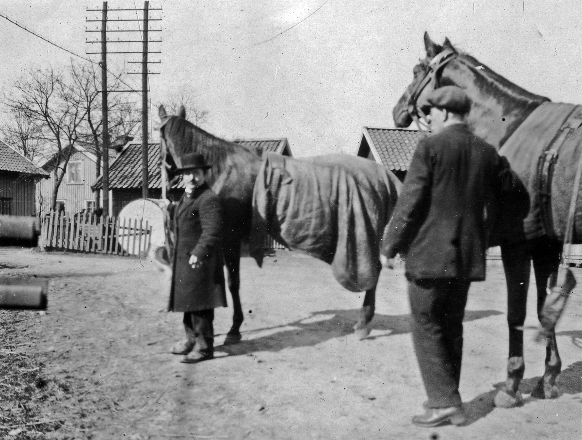 Bilden är troligen tagen i närheten av marknadsplatsen i nuvarande kvarteret Myggan. Möjligen pågår ett hästköp.