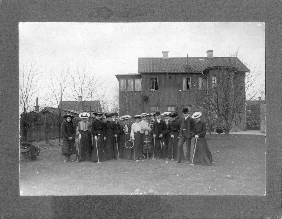 Några medlemmar står utanför ordenshuset. NGTO's lokal vid Göteborgsvägen i kvarteret Hammaren.