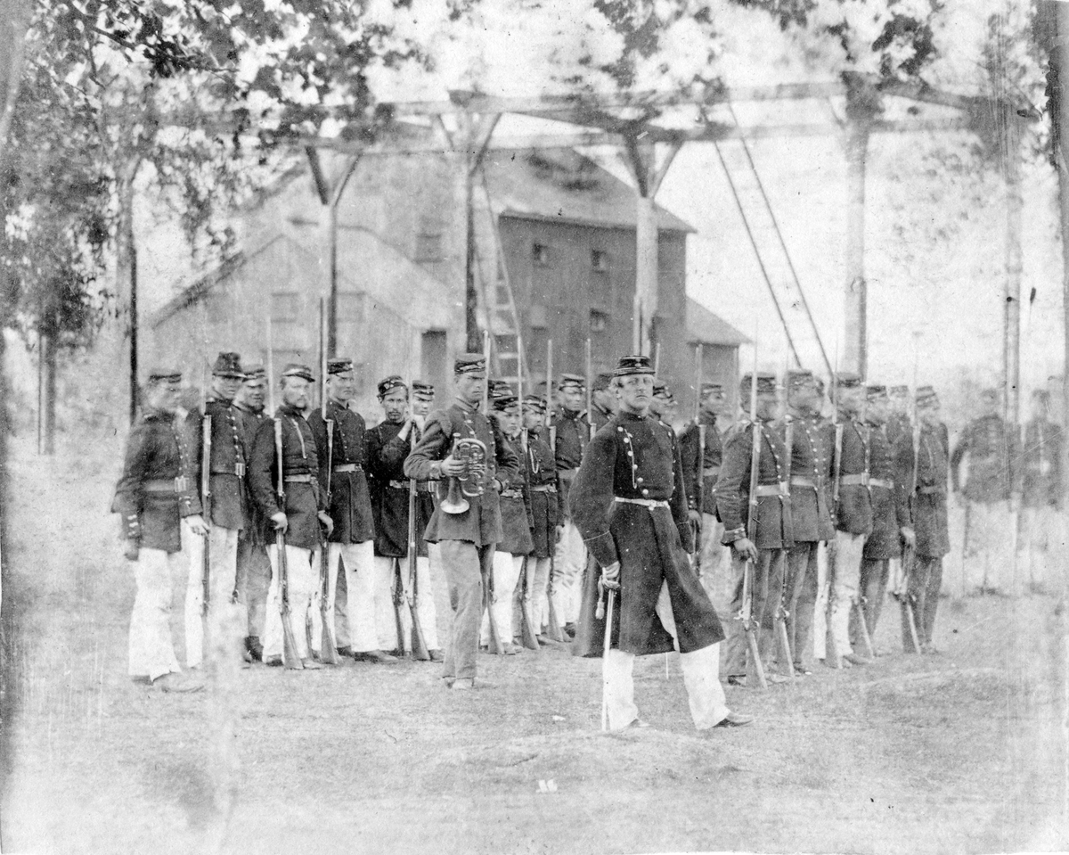 Skarpskyttekåren i Alingsås. Sjätte personen från vänster är August Bruno.