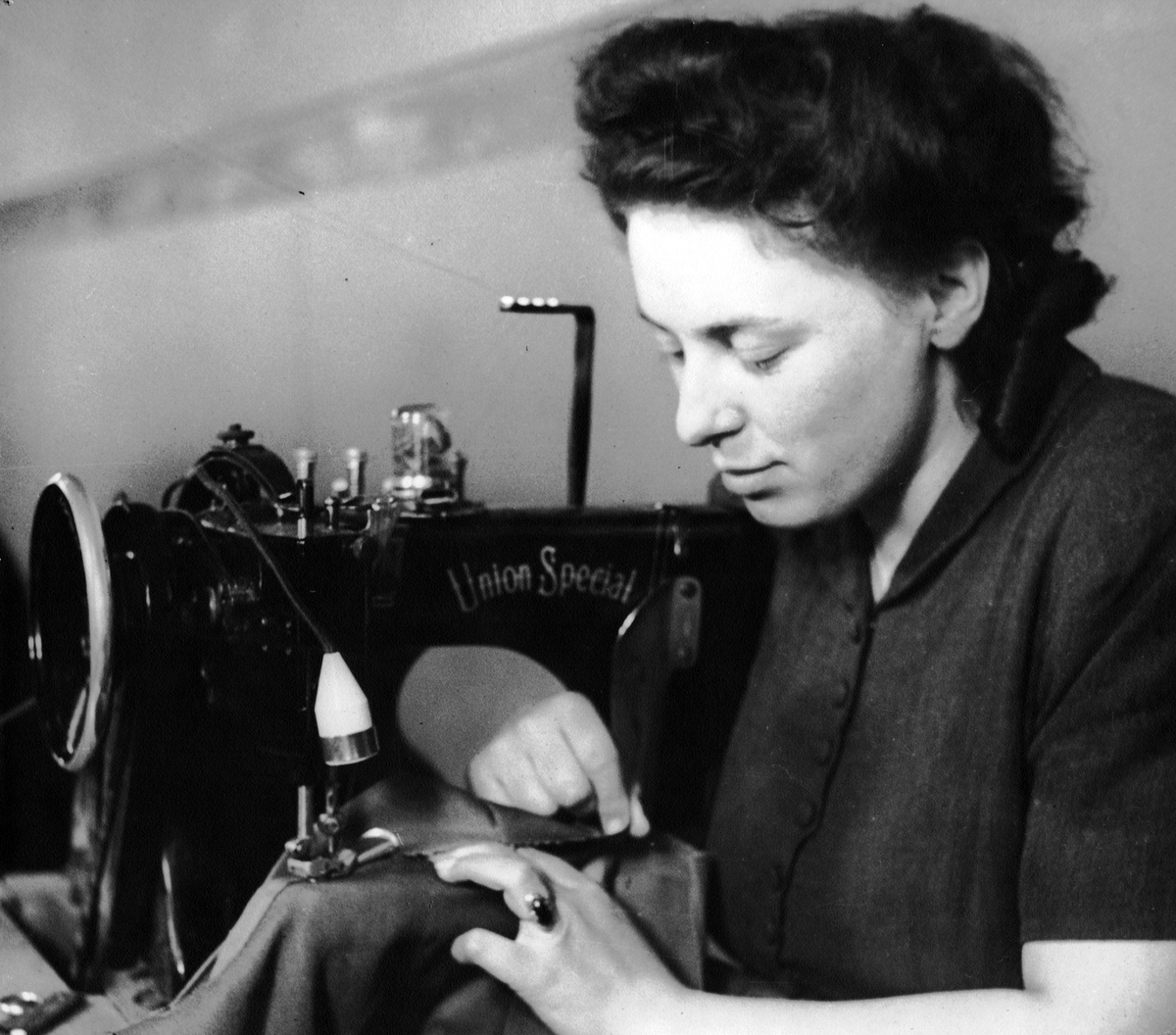 En bild på en kvinna i skjortfabriken på Gustafson & Werner, kvarteret Gustaf 2.