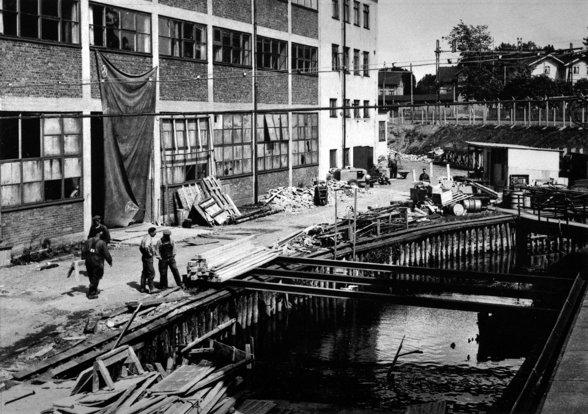 Kulvertering av Lillån, före Sieverts kabelverks inflyttning i Silfas gamla lokaler på Plangatan, kv Farkosten.