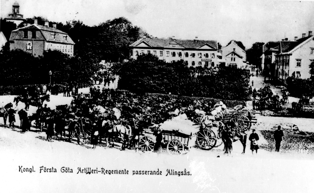Kunglia Första Göta Artilleriregemente passerar genom Alingsås.