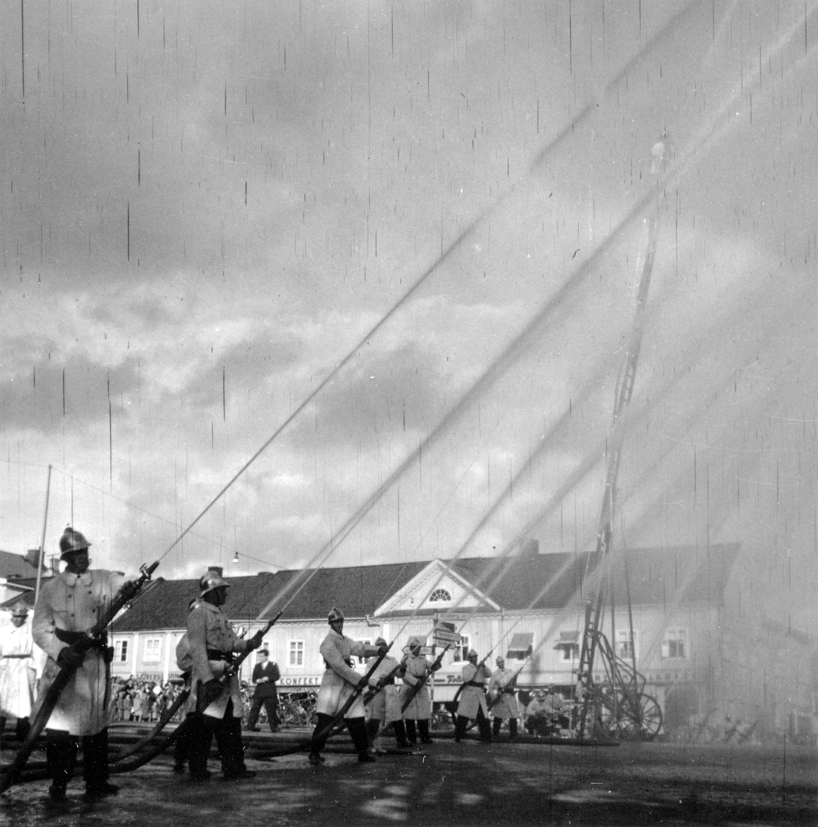 Brandkårens 50års jubileum 1950. Uppvisning på Stora Torget i Alingsås.