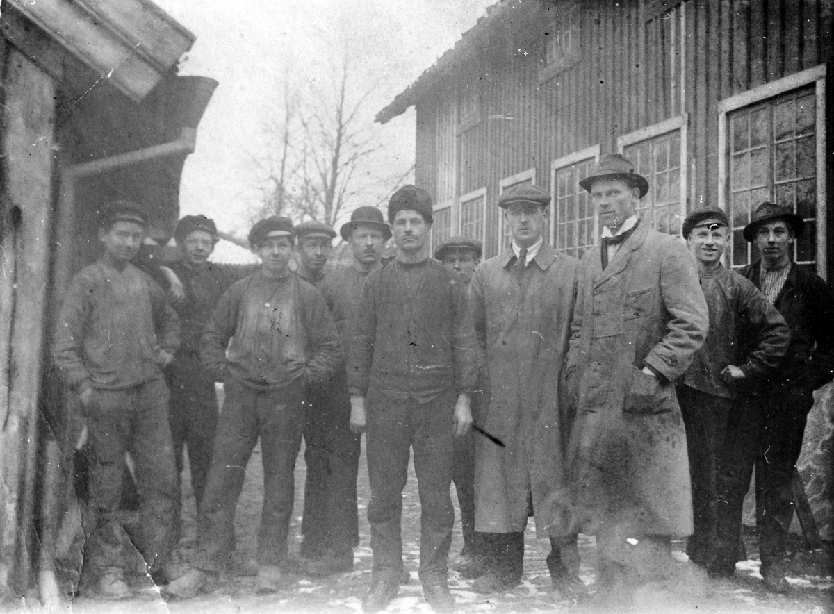 Ett tiotal män ur Carléns Plåtslageris personalstyrka.