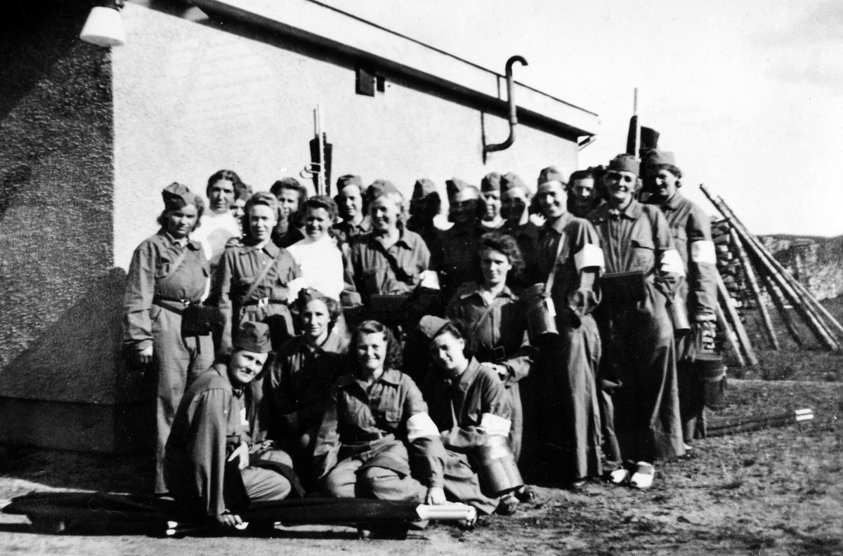 Kvinnor anställda vid Alingsås bomullsväveri och som deltog i civilförsvarsarbetet under krigsåren.