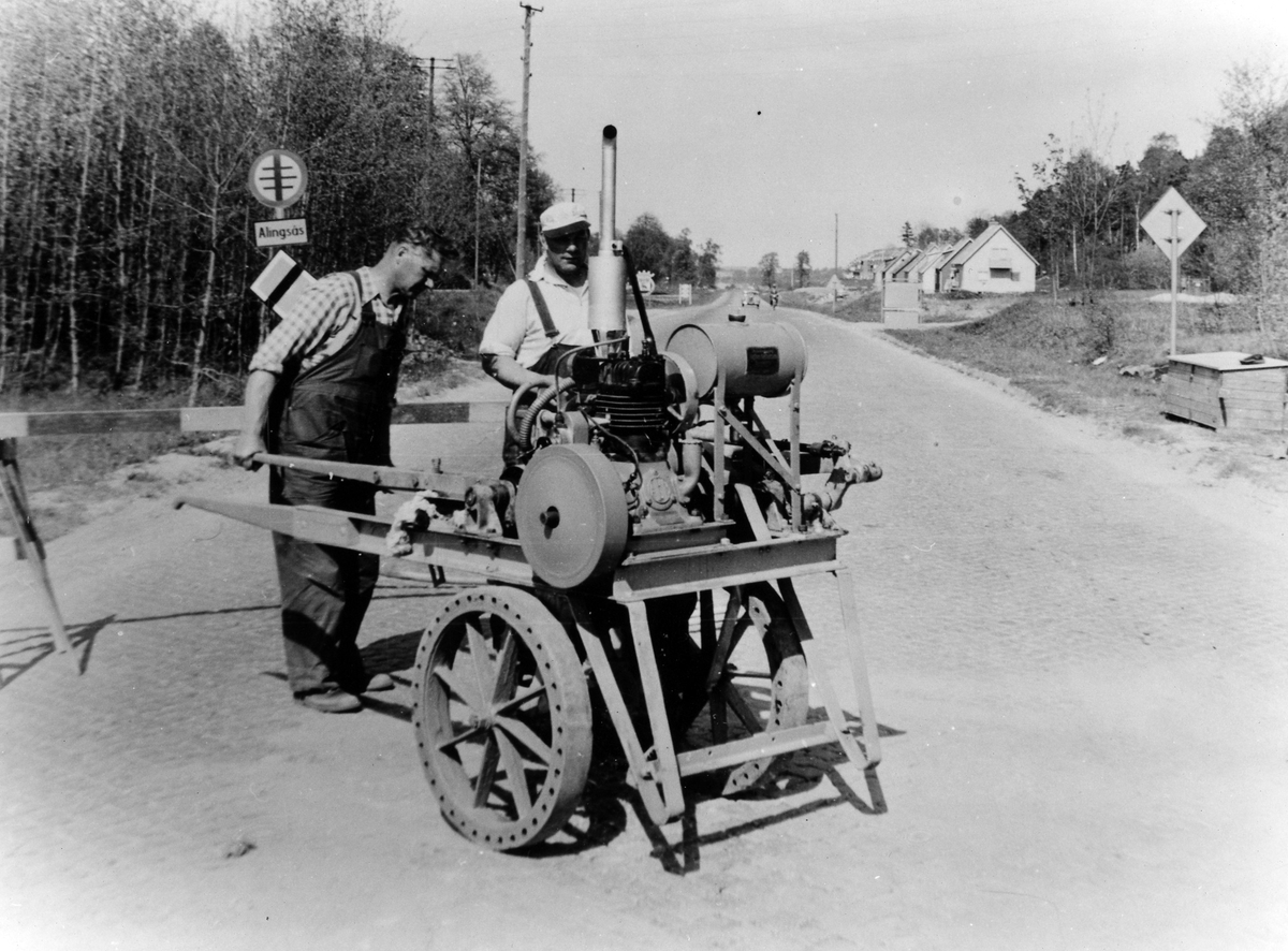 Gösta Karlsson och Gustav Karlsson med en stenstötmaskin på Göteborgsvägen vid "Gläntan".