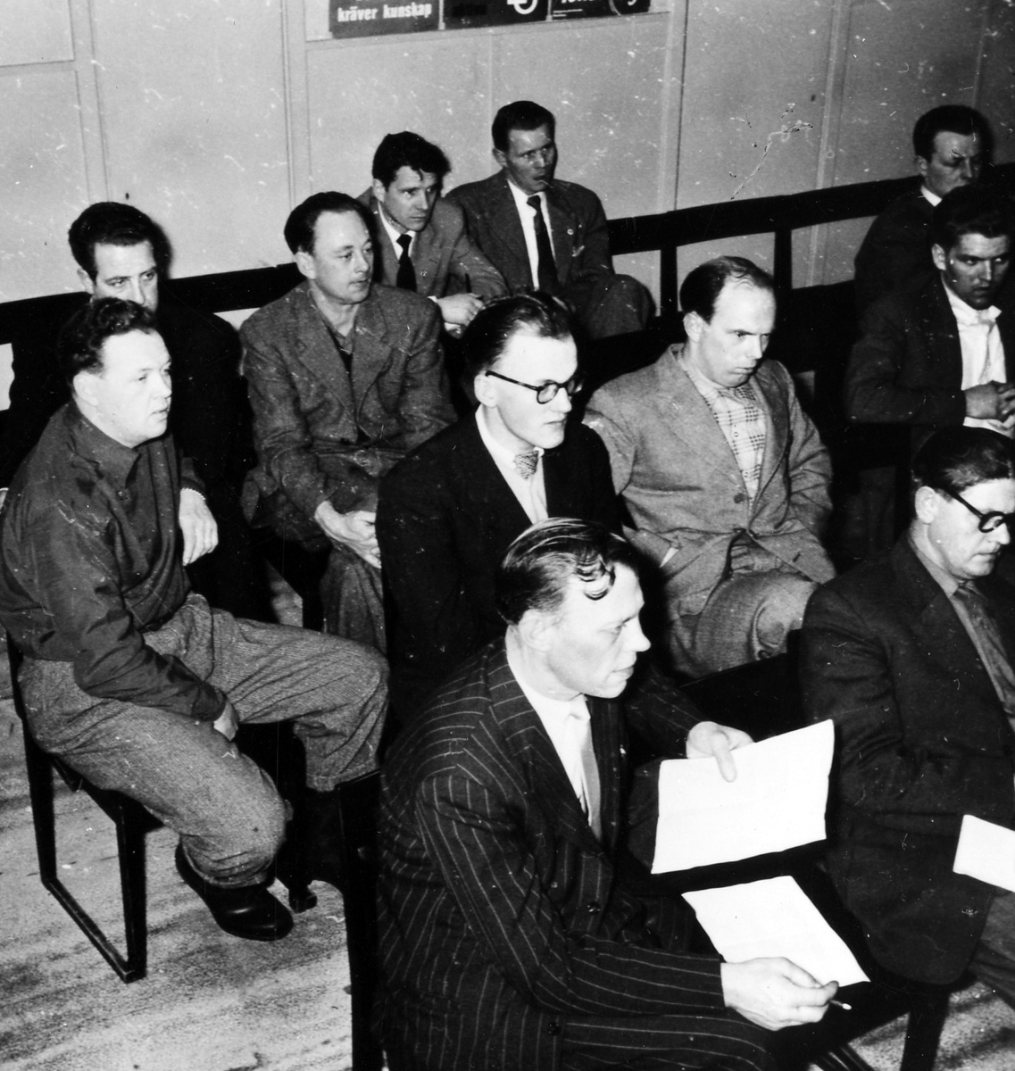 Ett tiotal män på ett fackligt möte med verkstadsklubben på Elektro-Helios.