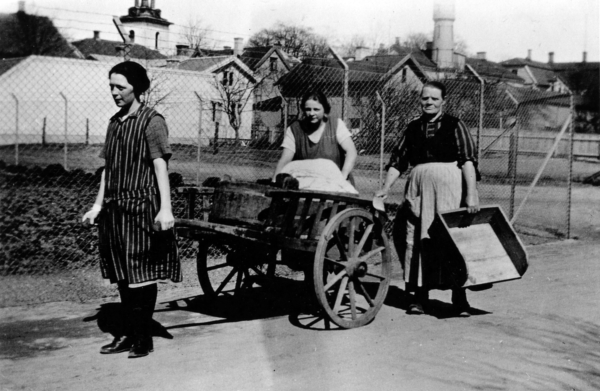 Amanda Dahlgren med dottern Ruth på väg från Solgatan med tvätt till tvättflotten i Lillån.