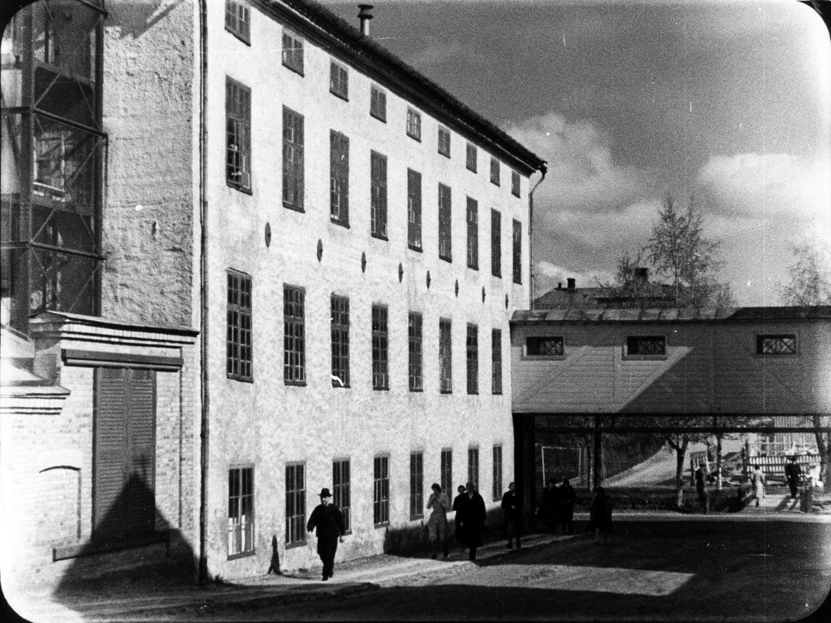 Alingsås bomullsväveri, gamla fabriken i kvarter Fliten. Östra vattugränd mot norr.