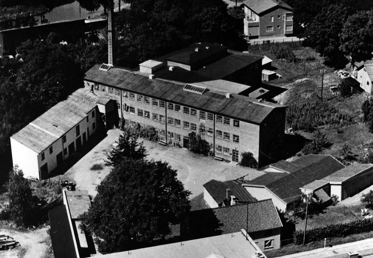 Flygfoto av garveri Axel Bodéns Handels AB i kv Klockan.