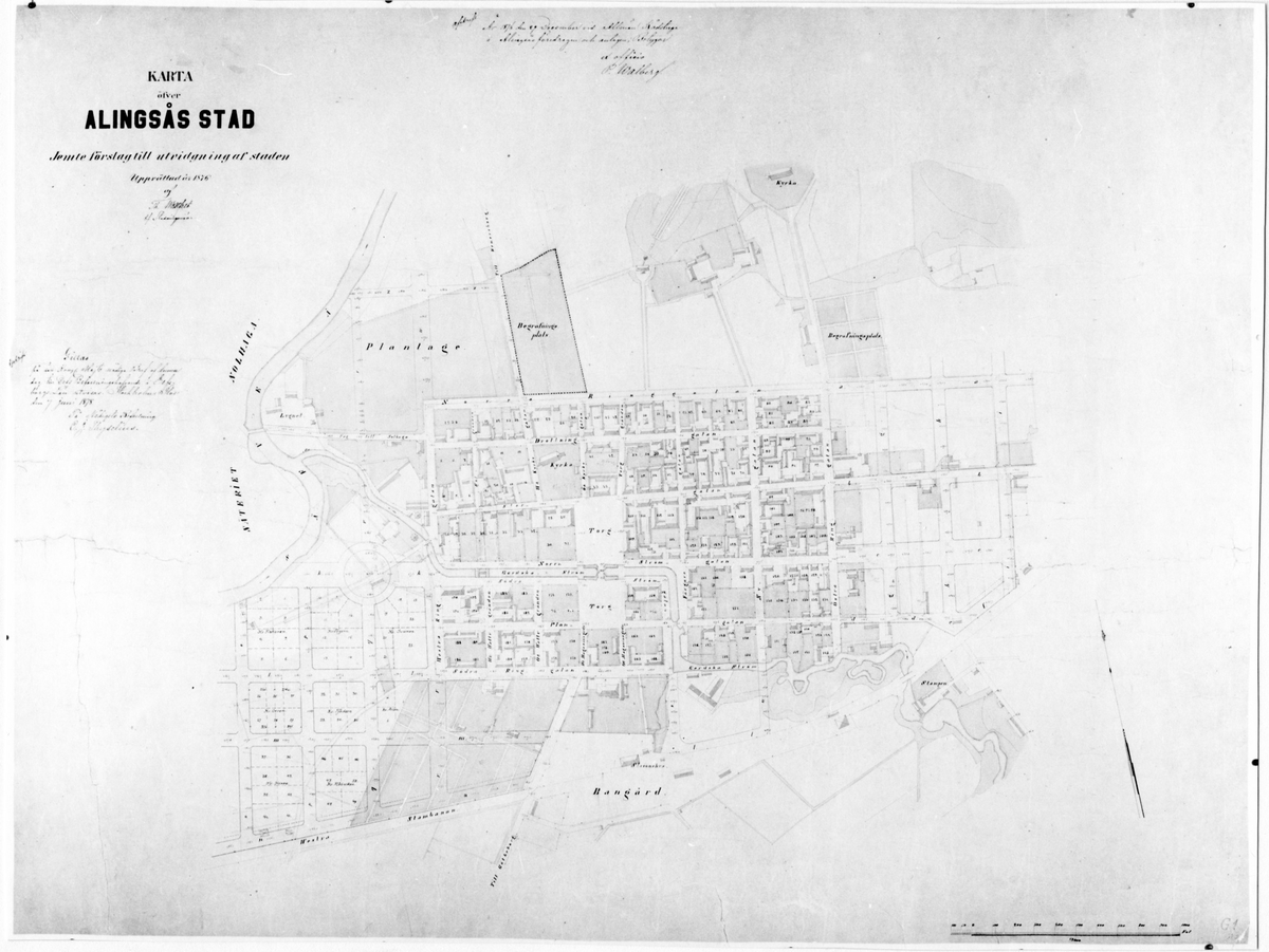 Karta över Alingsås med utvidgningsförslag 1876.