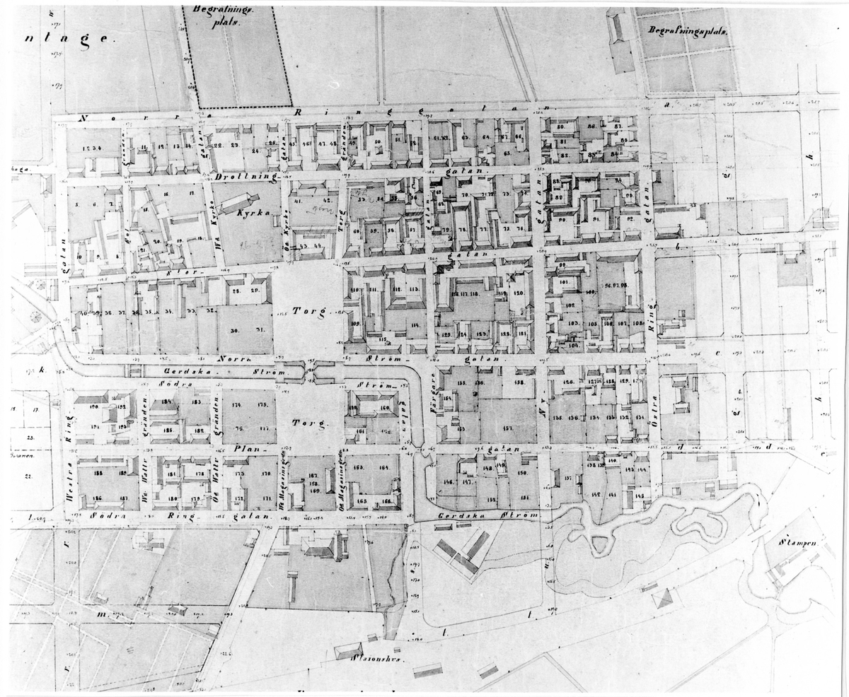 Karta över Alingsås med utvidgningsförslag 1876. Detalj.