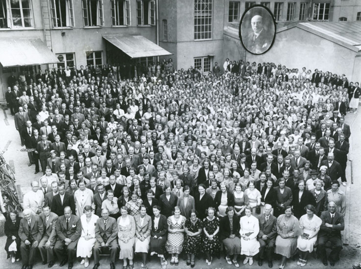 Anställda vid A. B. Schwartzman & Nordström 1936, infogad bild uppe till höger är Marcus Schwartzman