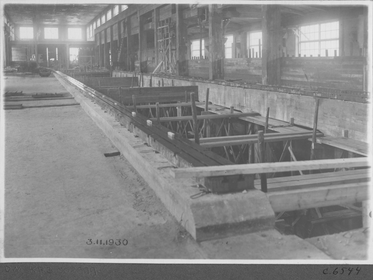 Kvarnsvedens pappersbruk, C 6544. 3-11-1930. Vy invändigt över bygget.