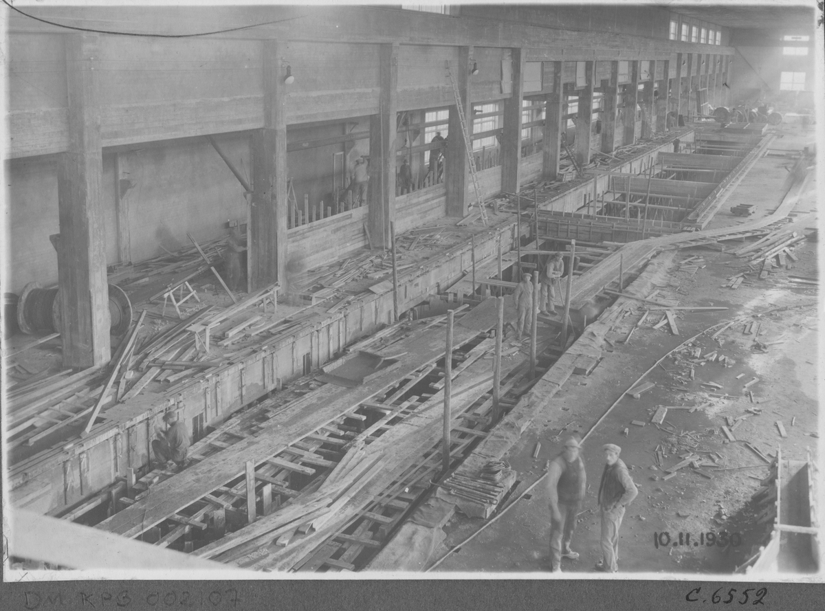 Kvarnsvedens pappersbruk, C 6552. 10-11-1930. Vy invändigt över bygget.