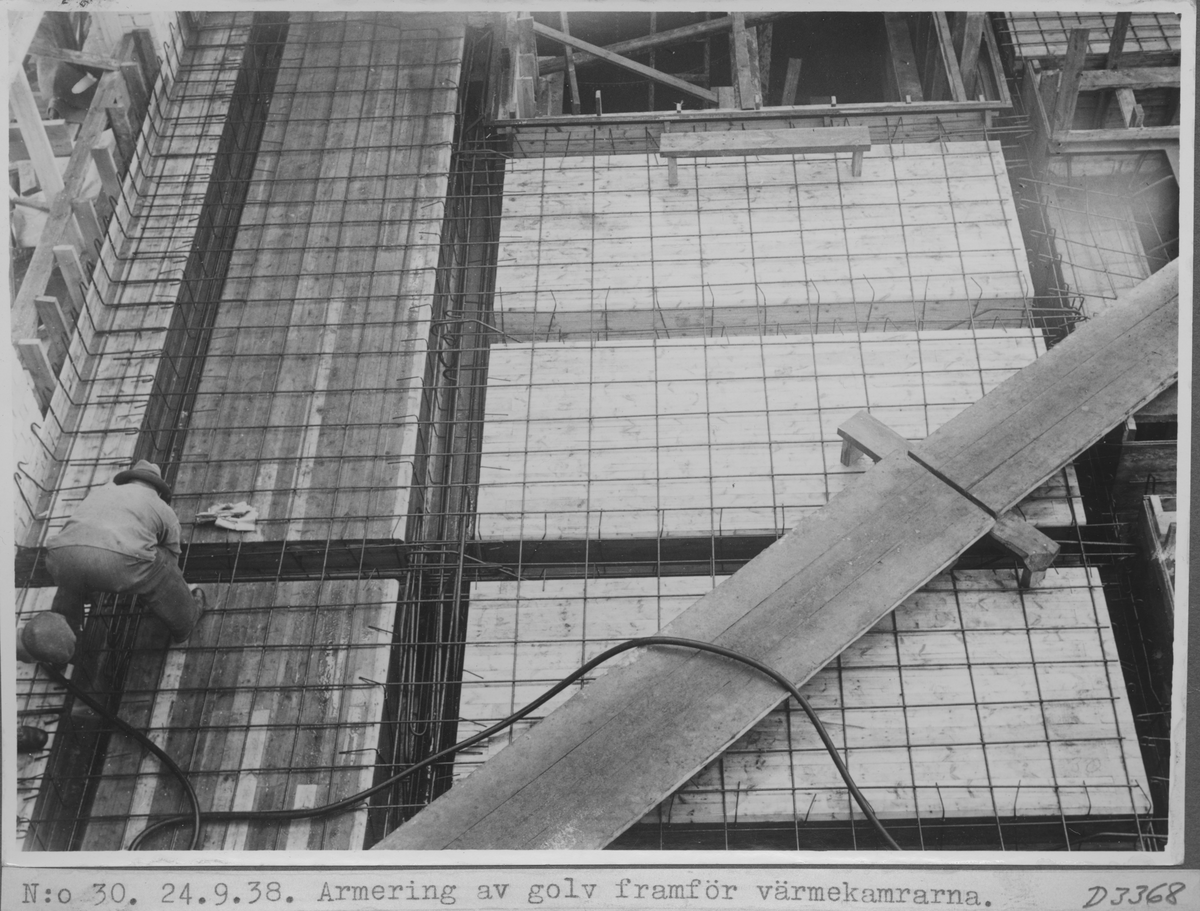 Kvarnsvedens pappersbruk. N:o 30. 24.9.38. Armering av golv framför värmekamrarna. D3368.