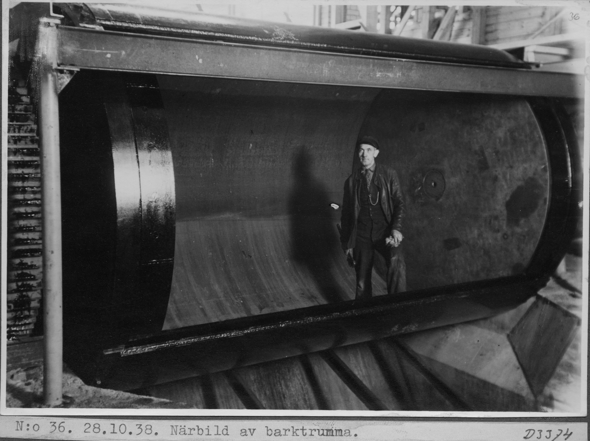 Kvarnsvedens pappersbruk. N:o 36. 28.10.38. Närbild av barktrumma. D3374.