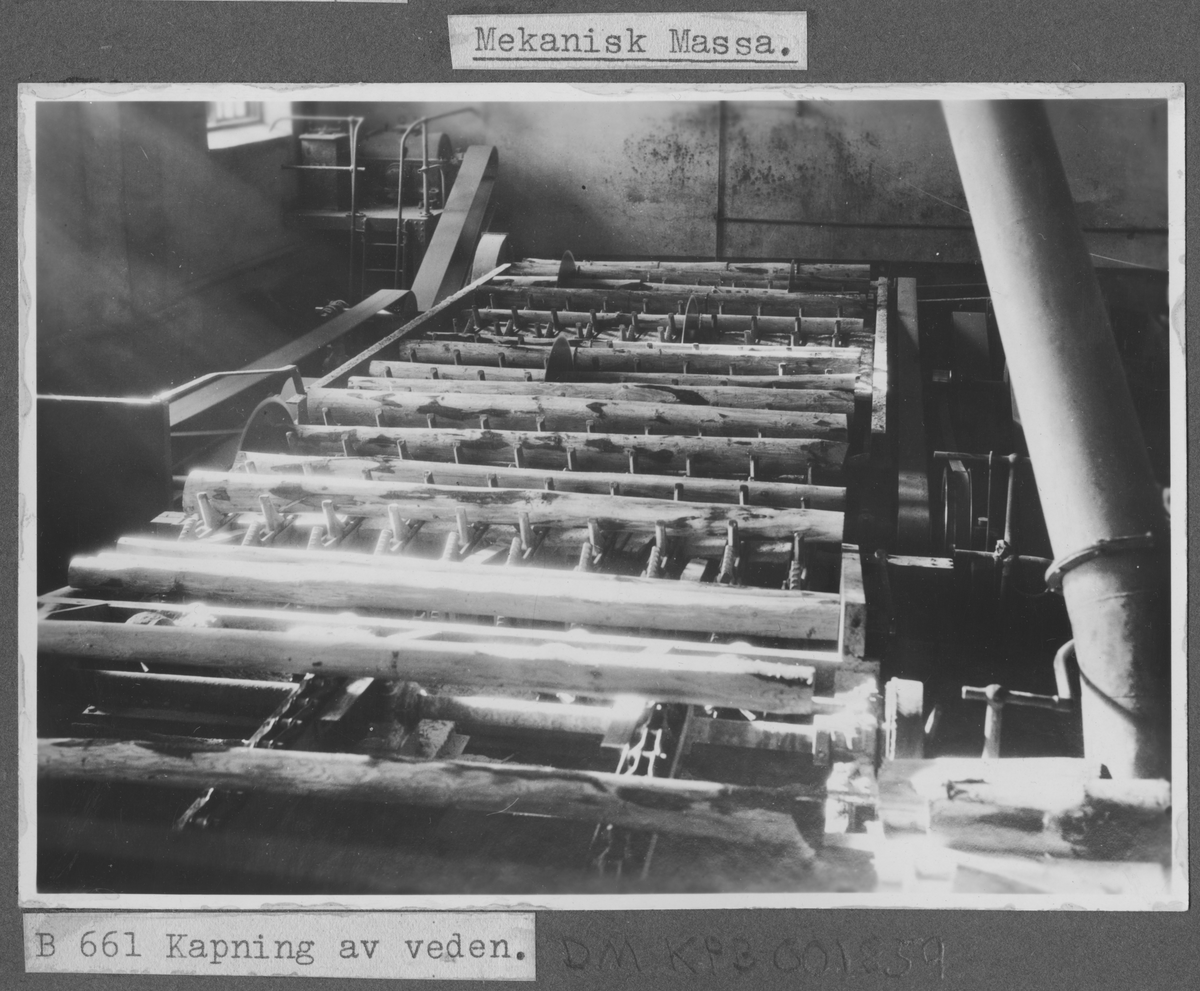 Kvarnsvedens pappersbruk, Mekanisk Massa. B 661 Kapning av veden.