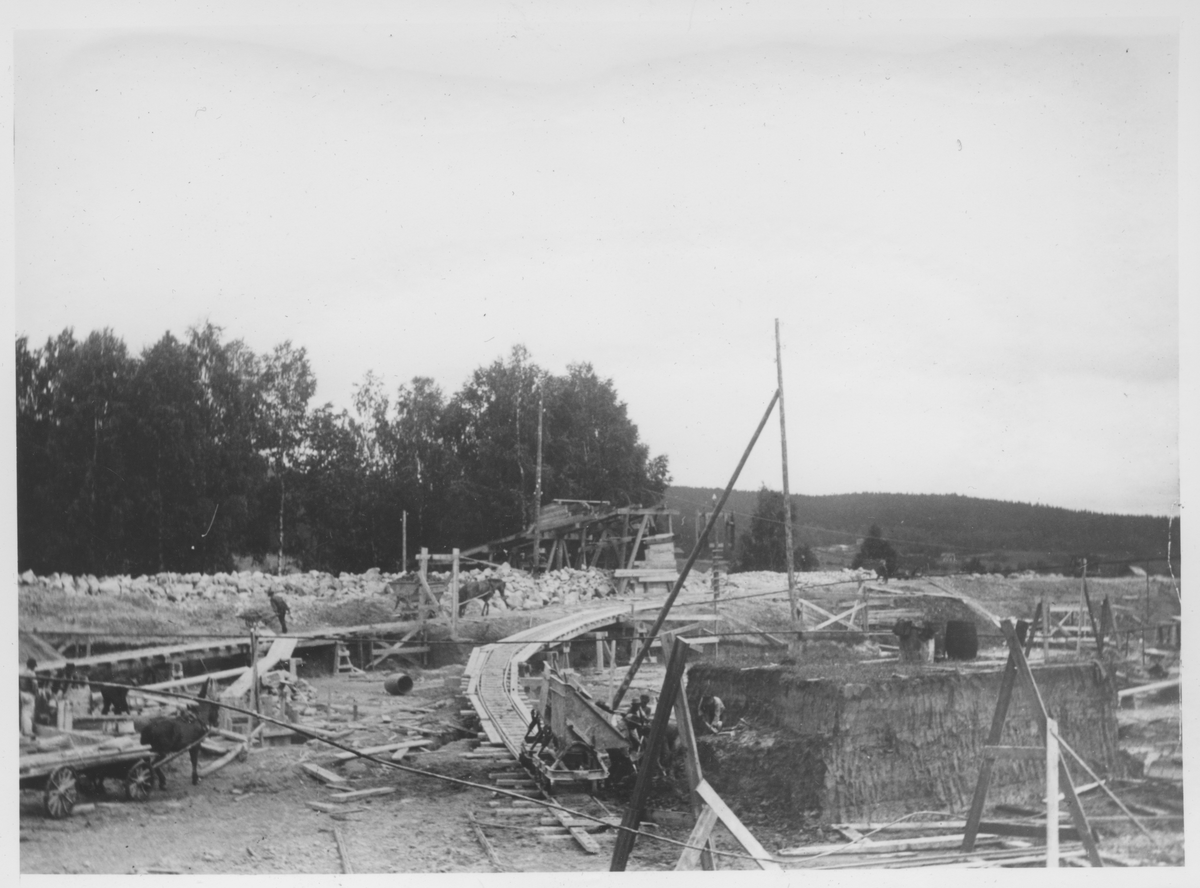 Dammen byggs 1897- Vy över arbetsplatsen.