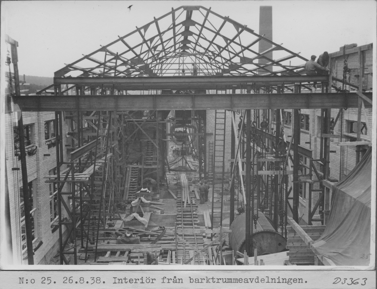 Kvarnsvedens pappersbruk. N:o 25. 26.8.38. Interiör från barktrummeavdelningen. D3363.