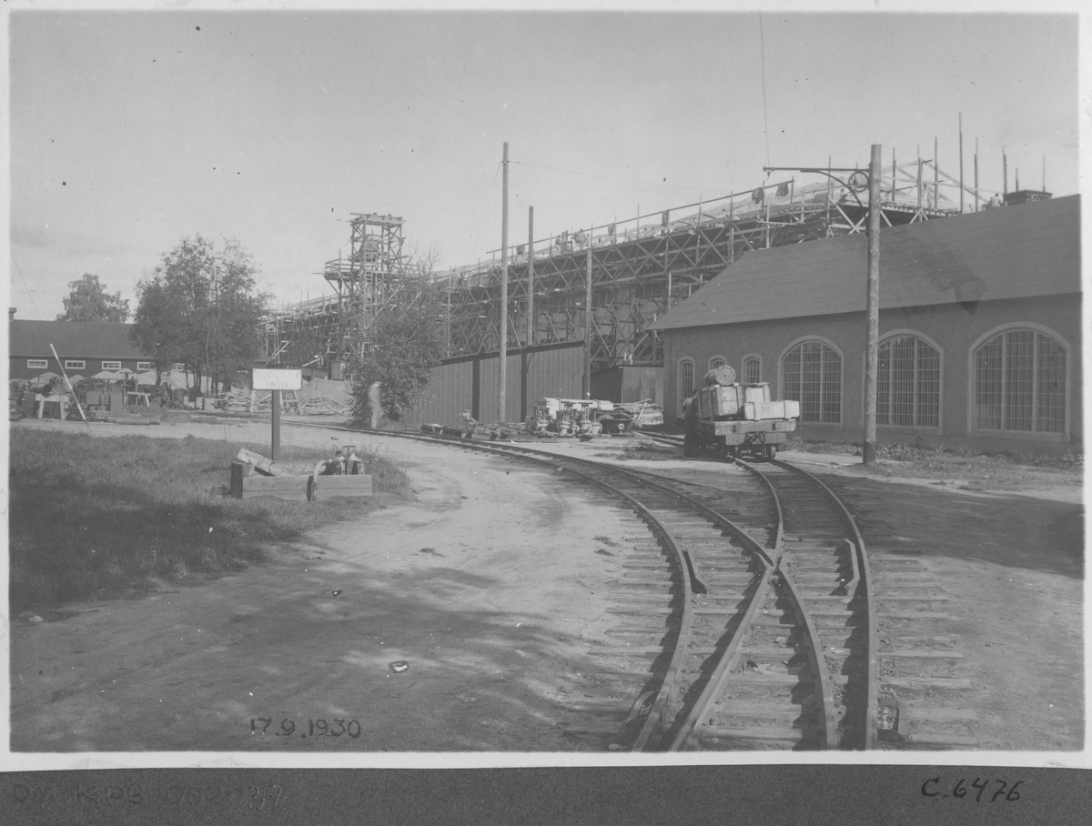 Kvarnsvedens pappersbruk, C 6476. 17-9-1930. Vy över bygget och äldre byggnader