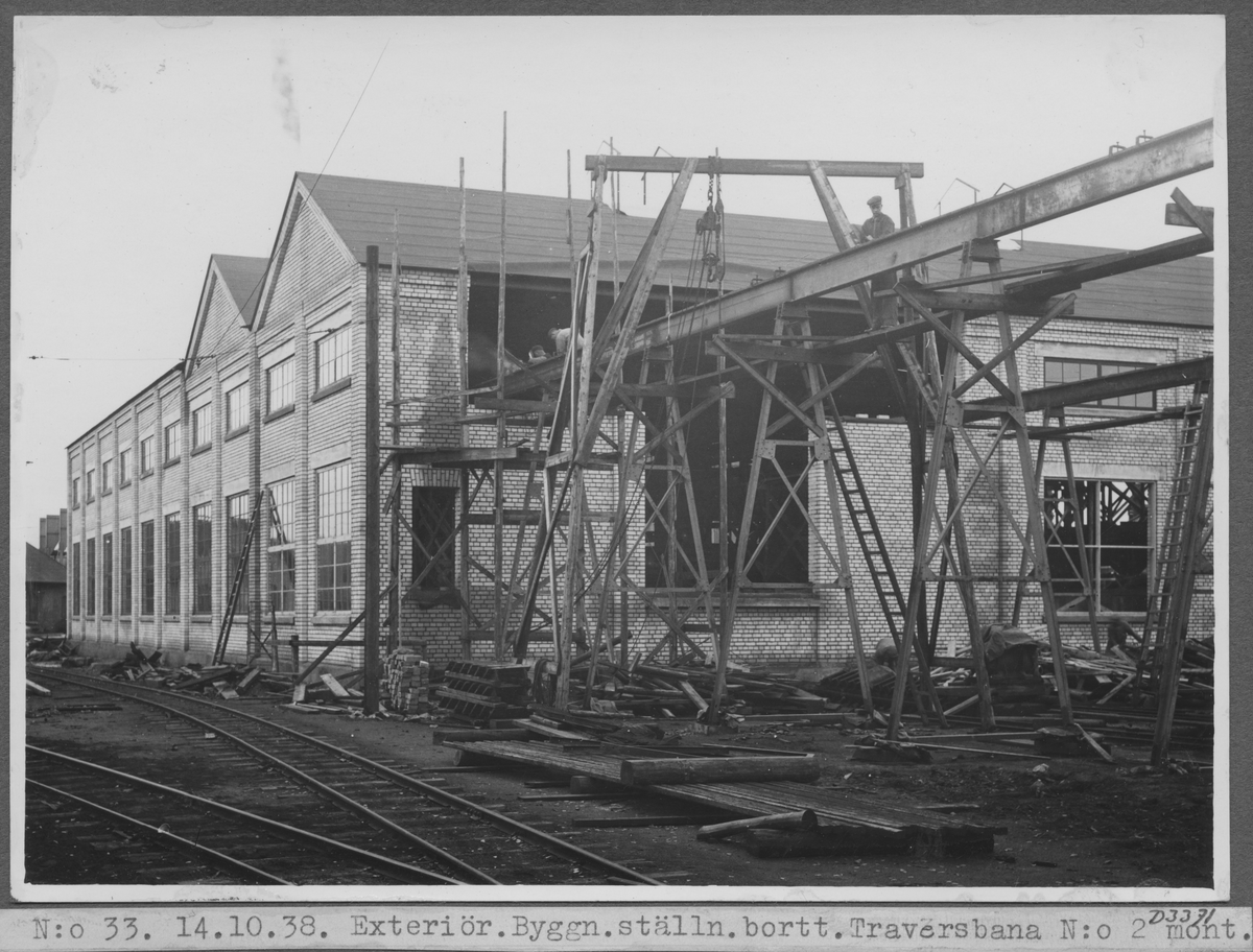 Kvarnsvedens pappersbruk. N:o 33. 14.10.38. Exteriör byggnadsställning borttagen. Traversbana N:o 2 monterad D3369.