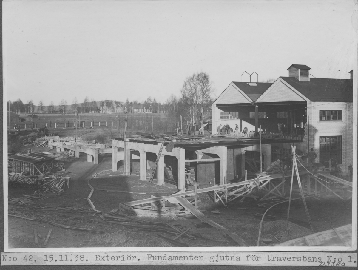 Kvarnsvedens pappersbruk. N:o 42. 15.11.38. Exteriör. Fundamenten gjutna för traversbanan N:o 1. D3380.