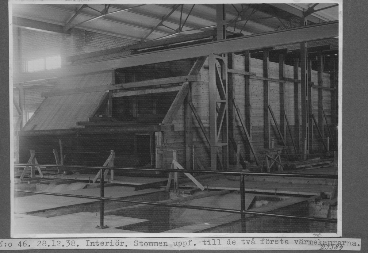 Kvarnsvedens pappersbruk. N:o 46. 28.12.38. Interiör. Stommen uppförd till de två första värmekamrarna. D3384.