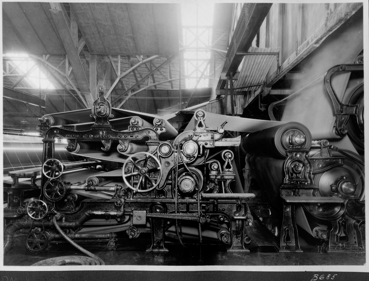 Kvarnsvedens pappersbruk, Pappersmaskin 8, byggnation del 1 och 2. Interiör bruket. B685
