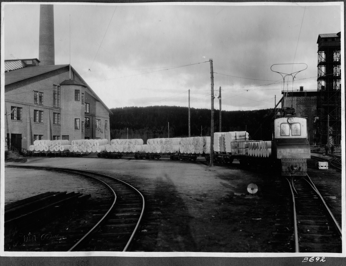 Kvarnsvedens pappersbruk, Pappersmaskin 8, byggnation del 1 och 2. Tåg lastat med pappersbalar B692