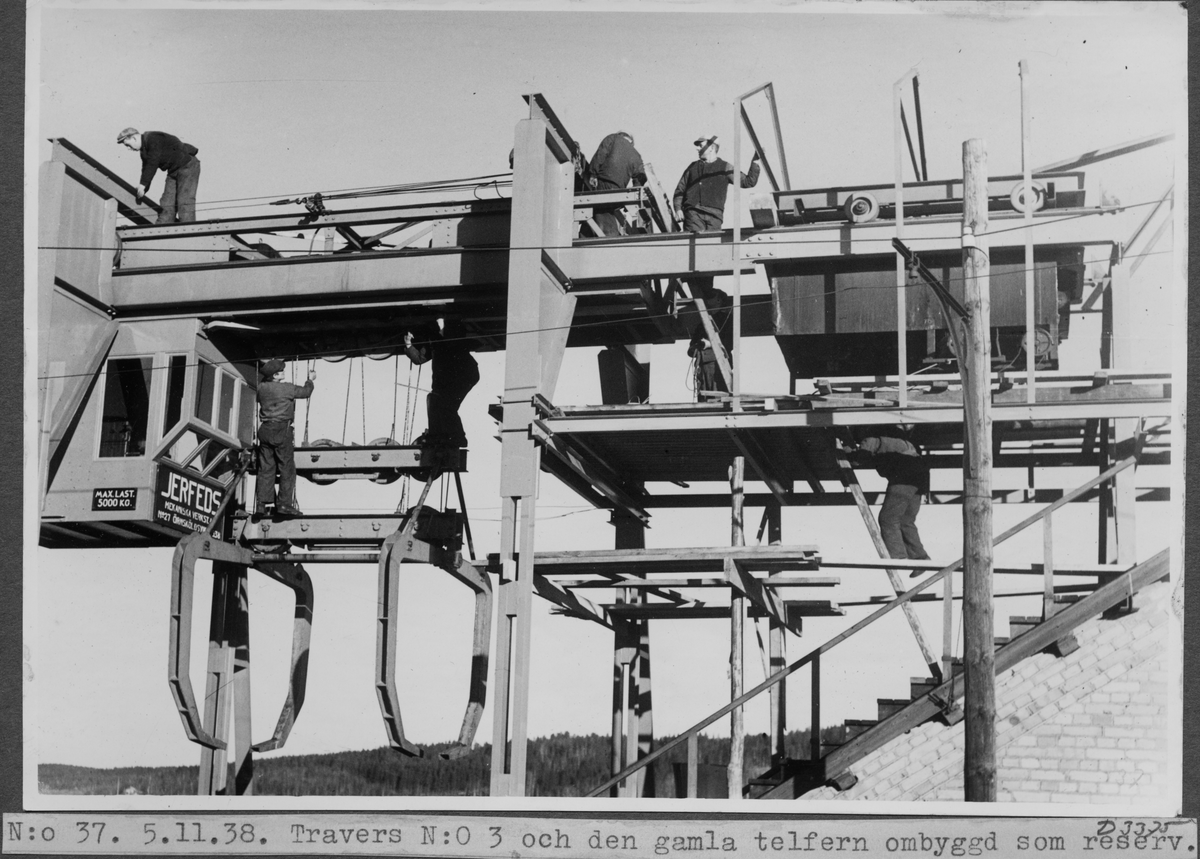 Kvarnsvedens pappersbruk. N:o 37. 5.11.38. Travers N:o 3 och den gamla telfern ombyggd som reserv. D3375.