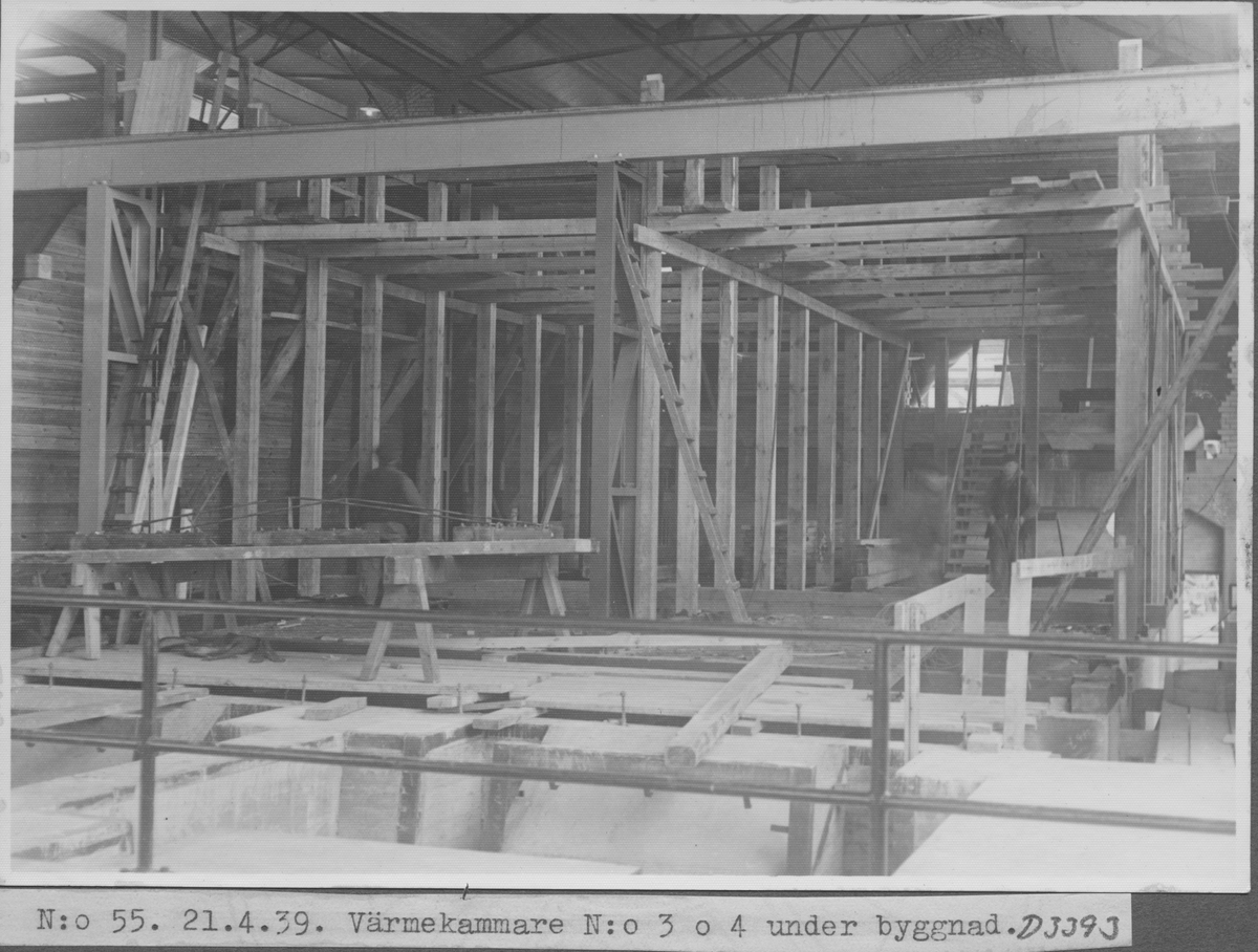 Kvarnsvedens pappersbruk. N:o 55. 21.4.39. Värmekammare N:o 3 och 4 under byggnad. D3393.