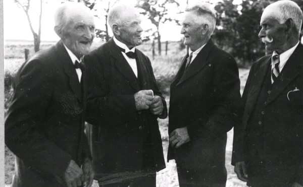 Från folkskolan i Åhs. Bilden hör samman med artikeln i Hallands Nyheter, 1944-08-09: "Från skoljubileet i Tvååker: Rottingen i lärarens hand ett erkänt uppfostringsmedel". Bildtext: "Några elever i samspråk". Tillhör samlingen med fotokopior från Hallands Nyheter som är från 1930-1940-talen.