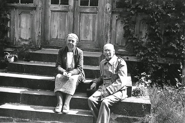 Folkskolläraren Anders Hermansson med fru Anna-Lisa Hermansson på landeriet Freden i Varberg, tre bilder. Tillhör samlingen med fotokopior från Hallands Nyheter som är från 1930-1940-talen.