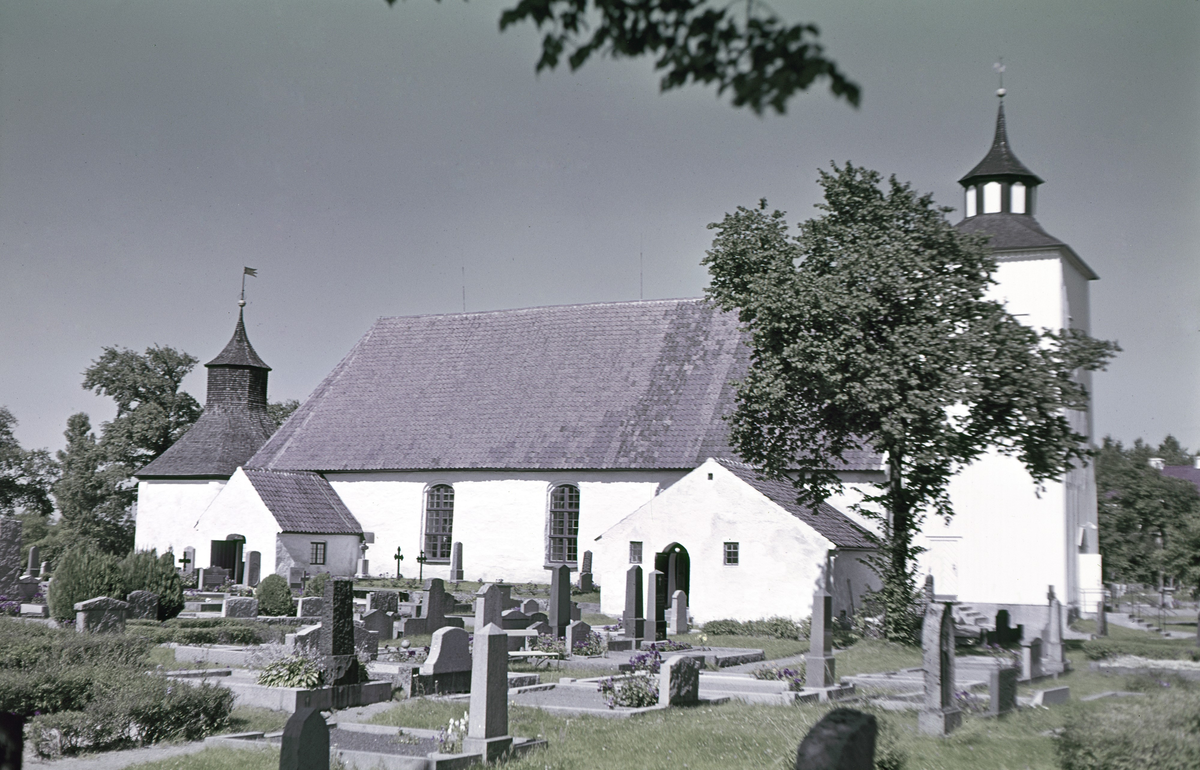 Onsala kyrka och kyrkogård sedd från nordväst.