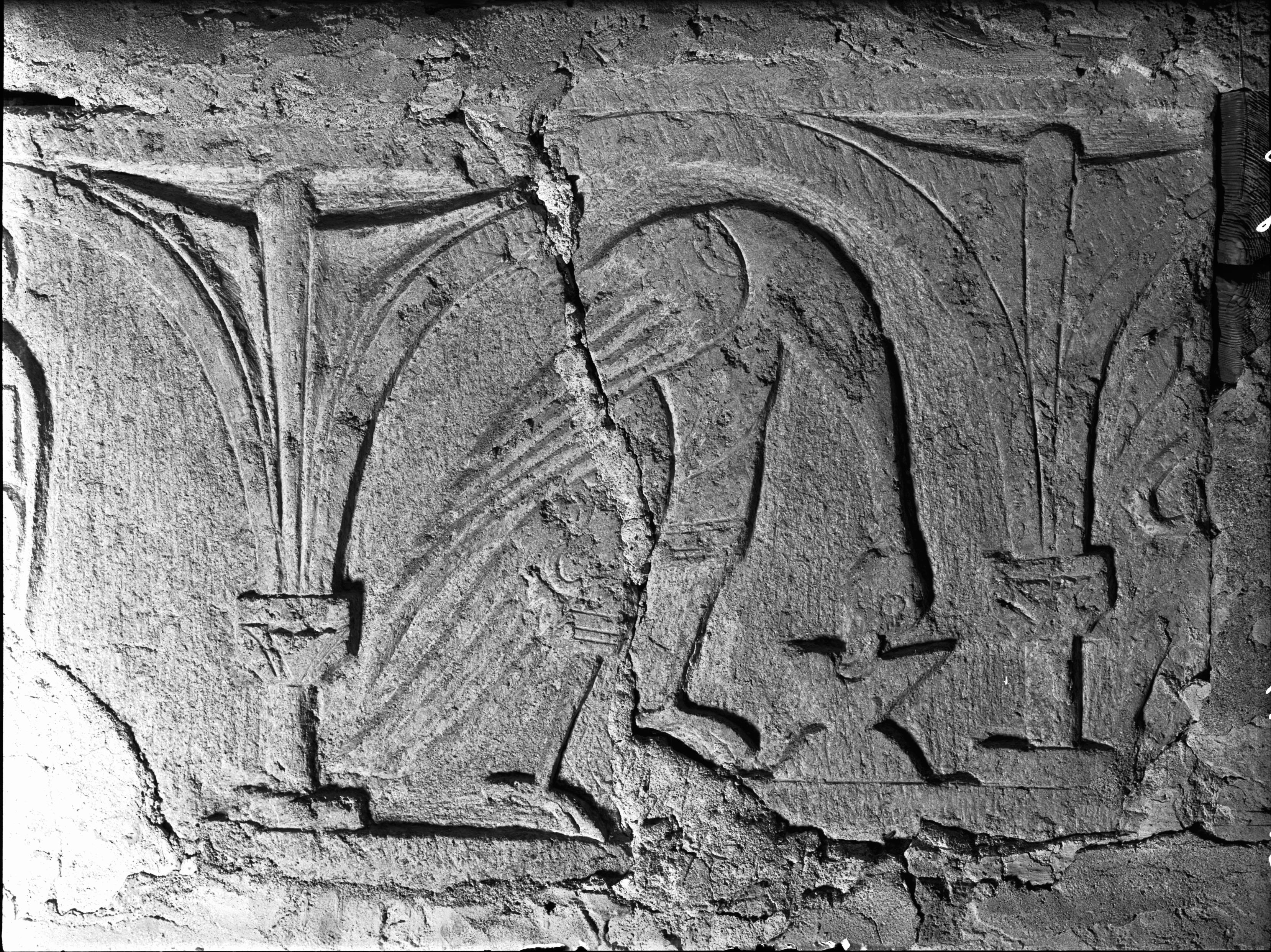 Byzantiosreliefer på korets sydfasad. Trana som dricker ur bägare.