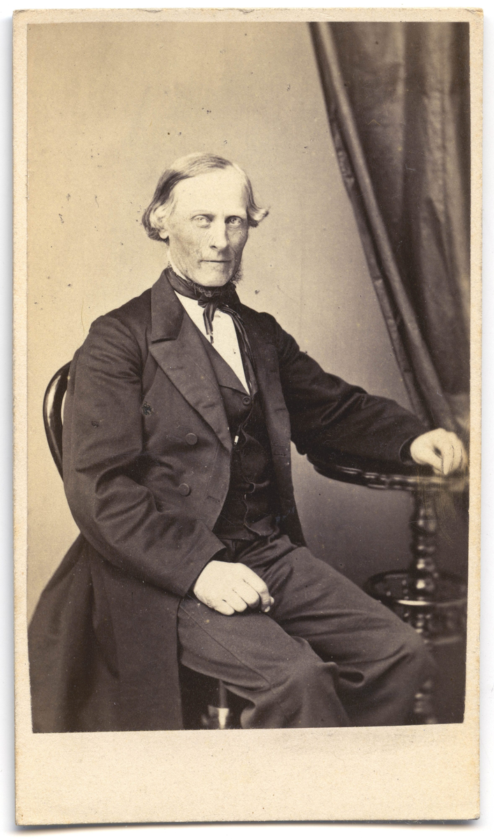 Porträtt på en man i helfigur sittande.