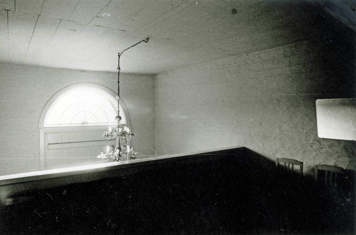 Interiör från Hälleberga kyrka innan branden 1976.