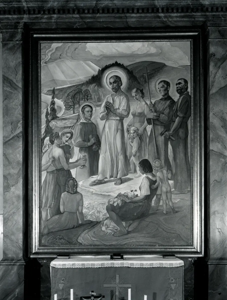 Altartavla utförd av Simon Gate som fanns i den tidigare kyrkan innan den brann ned.