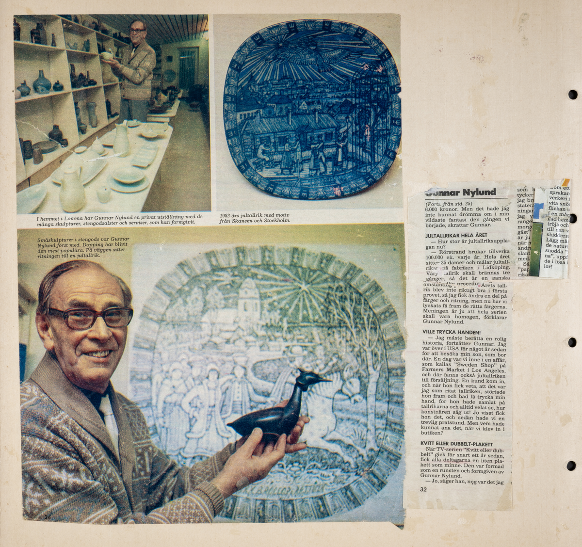 Tidningsartikel om designern Gunnar Nylund (1904-1997):