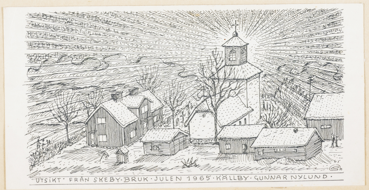 Text nedtill: "Utsikt Från Skeby Bruk Julen 1965 Källby Gunnar Nylund".
