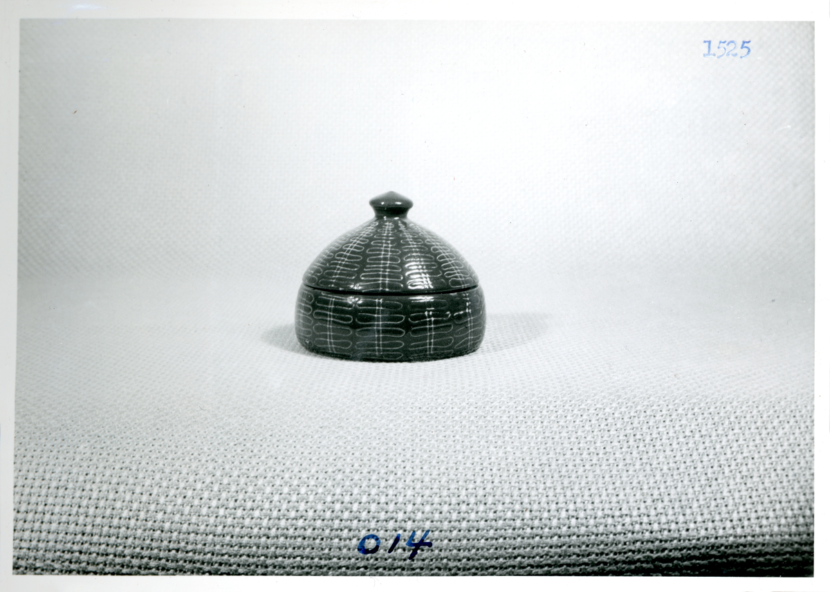 Puderburk med lock 014 från Bo Fajans, formgivare Berit Ternell, omkring 1900-talets mitt.