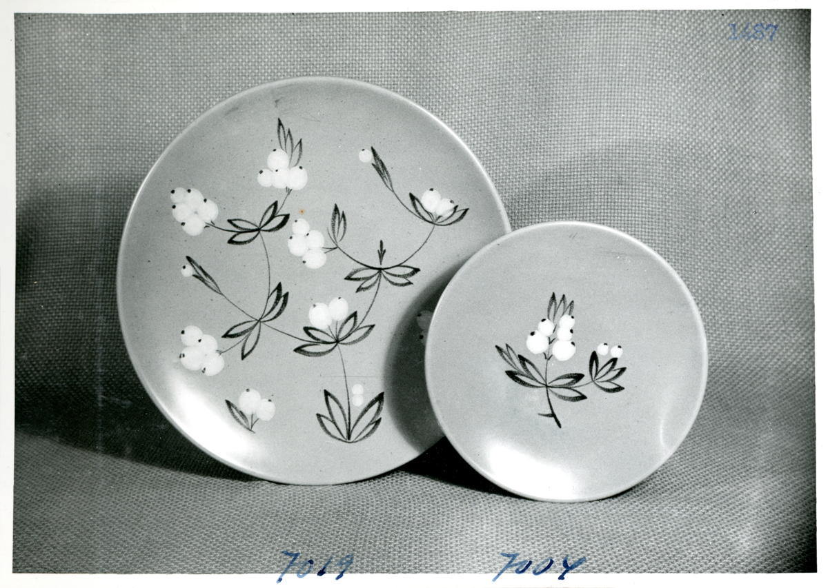 Fat 7019 och assiett 7004 från Bo Fajans omkring 1900-talets mitt.