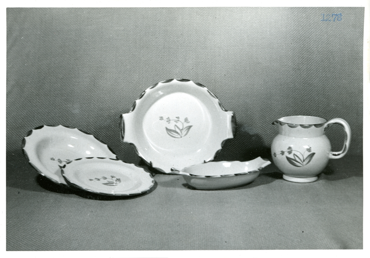 Servis med fat och tillbringare från Bo Fajans, omkring 1900-talets mitt.