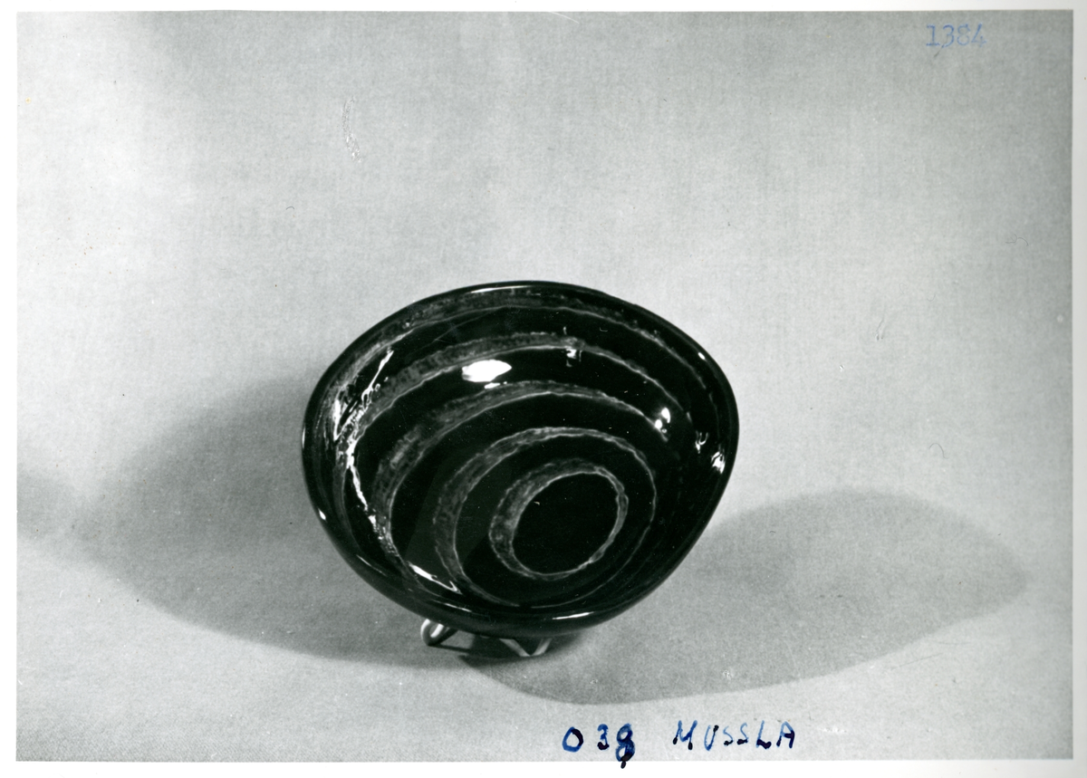 Skål i dekro "Mussla" från Bo Fajans, formgivare Berit Ternell, omkring 1900-talets mitt.