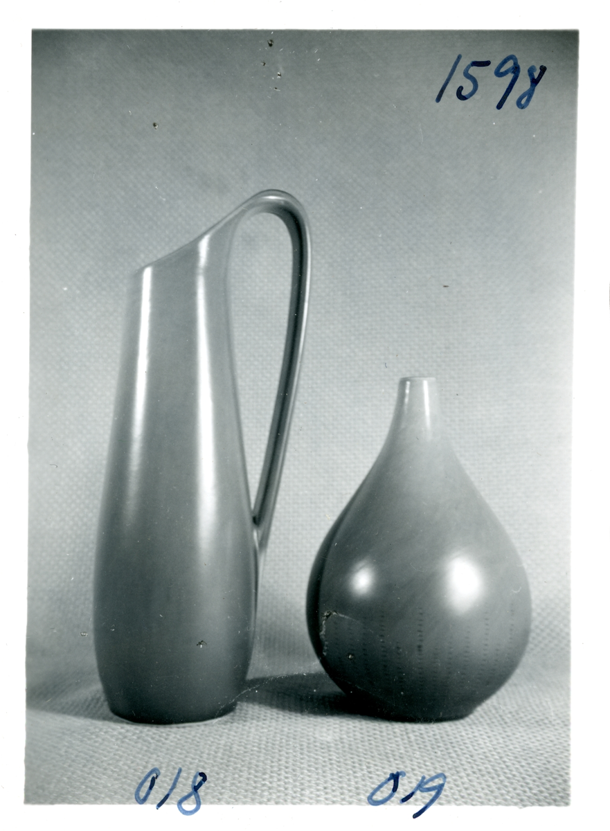 Krus 018 och vas 019 från Bo Fajans, formgivare Berit Ternell, omkring 1900-talets mitt.
