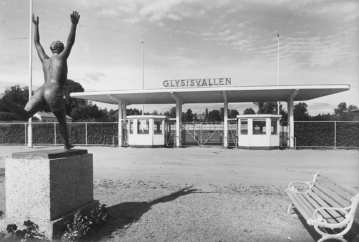Idrottsplatsen " Glysisvallen". Statyn "Löparen", Hudiksvall, Hälsingland